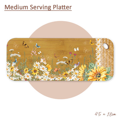 Bamboo Medium Serving Platter. 45x18cm. Happiness Blooms Here