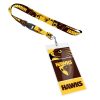 Official AFL Merchandise Hawthorn Hawks Mens Stadium Jacket; Polyester honeycomb ribstop – Polyester lining – Polyester fill – Elastic sleeve cuff – Contrast zip – Sleeve panel – Forward shoulder panel – Front yoke panel – Drop tail – Front zip pockets – Hood opening contrast bind – Front logo embroidery – Back wordmark print