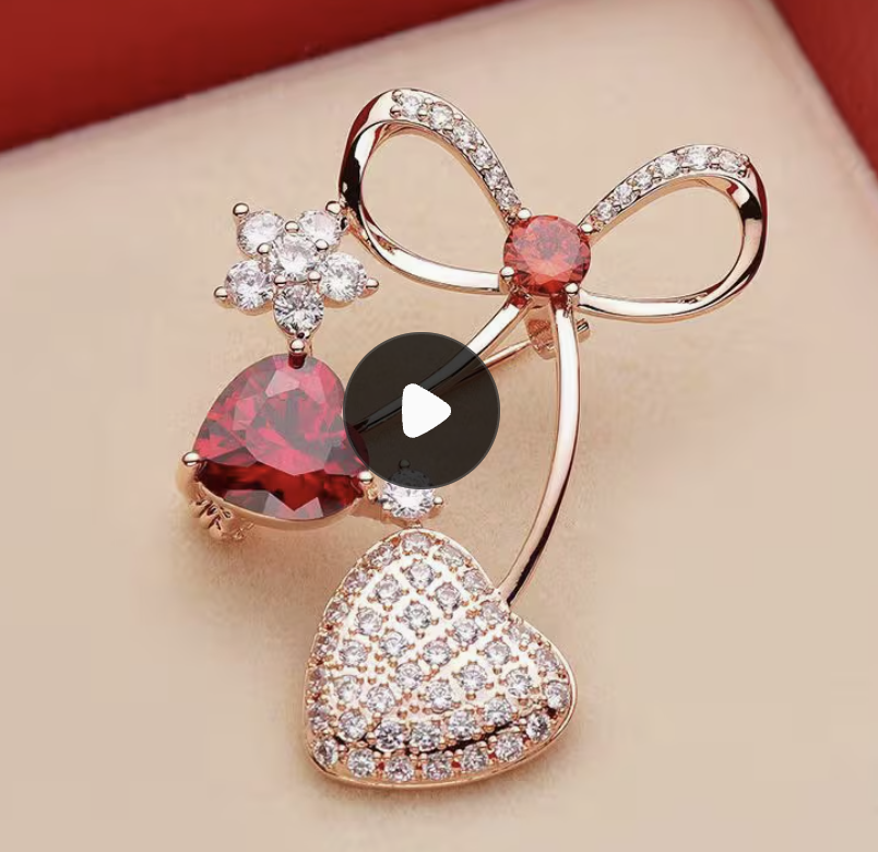 Stylish Heart-Shaped Pin Adorned with Red Stones And Rhinestones – Made from Golden-Tone Metal, Great for Jackets And Suits, a Perfect Gift for Valentine’S Day, a Fashionable Accessory for Autumn | Chic Accessory | Exquisite Craftsmanship