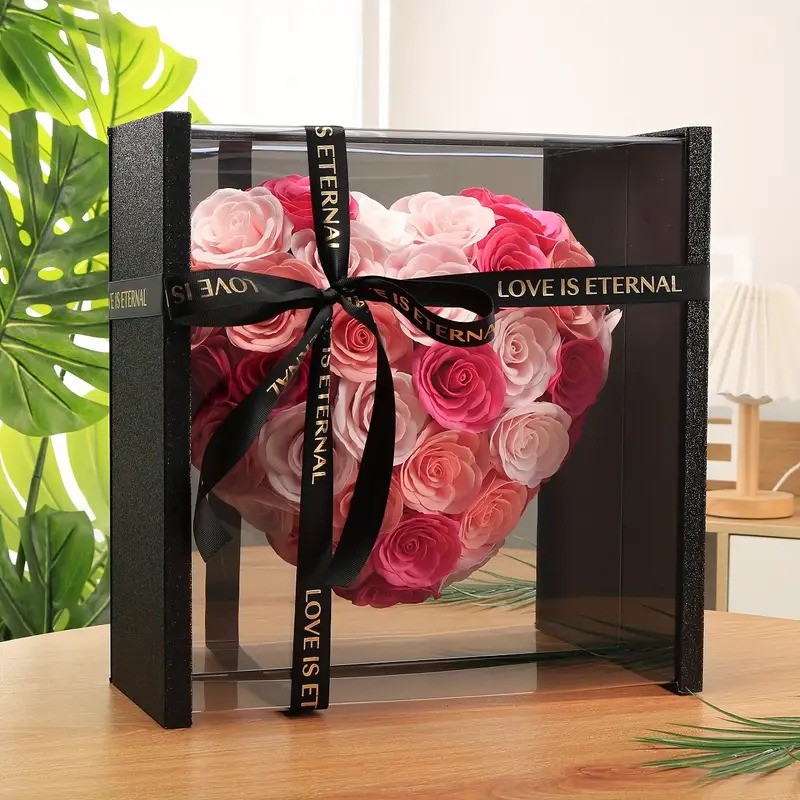 Heart-Shaped Eternal Rose Gift Box with Acrylic Display Case
