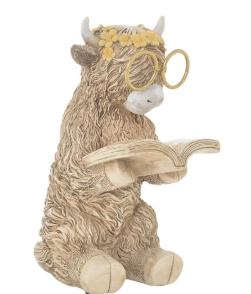 This Highland Cow Reading Resin Statue features an adorable design, capturing the charm of a studious highland cow engrossed in a book. Crafted from high-quality resin materials, it offers durability and a polished finish, making it a delightful decorative piece for any space. Perfect as a thoughtful gift for book lovers or a whimsical addition to your own collection.