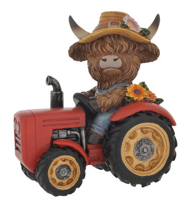 This Highland Cow Sunflower Tractor resin statue features a unique design with vibrant colors that bring character to any space. Crafted from durable resin material, it ensures long-lasting use both indoors and outdoors. The intricate detailing and eye-catching sunflower accents make it a standout decorative piece for homes, gardens, or offices.