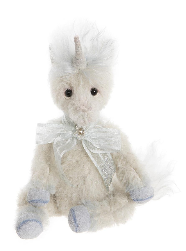 Jewel is one of our three new Minimo unicorns! She is a really enchanting character and her little uni-horn is just too cute. Did you know that a group of unicorns is known as a blessing? That means that you simply need to adopt her sisters Little Gem and Bijou too. She has dainty hooves, a white fluffy tail and a white lustrous mane. She is fully jointed and hand finished making each one unique. Limited edition of only 600 pieces worldwide. Recommended for ages 14 years +. Unicorn height: 18cm /7″.
