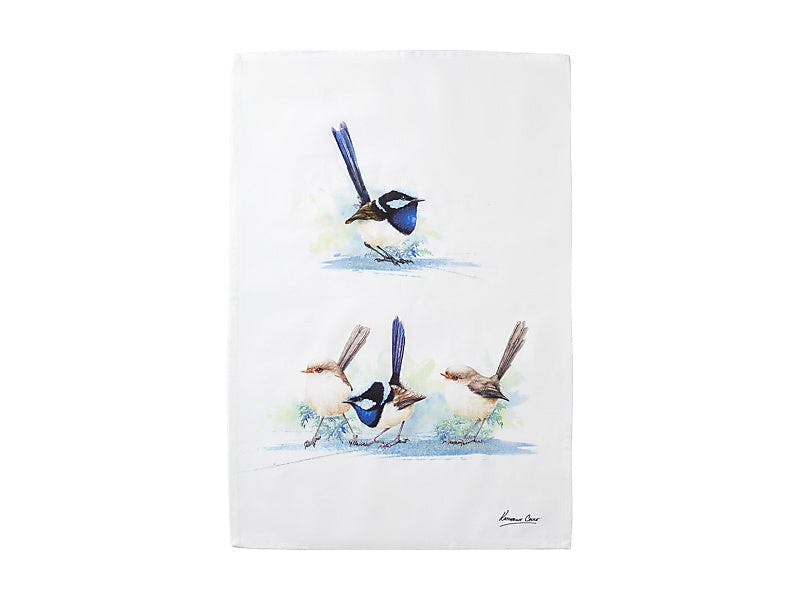 Katherine Castle Bird Life Tea Towel Blue Wren