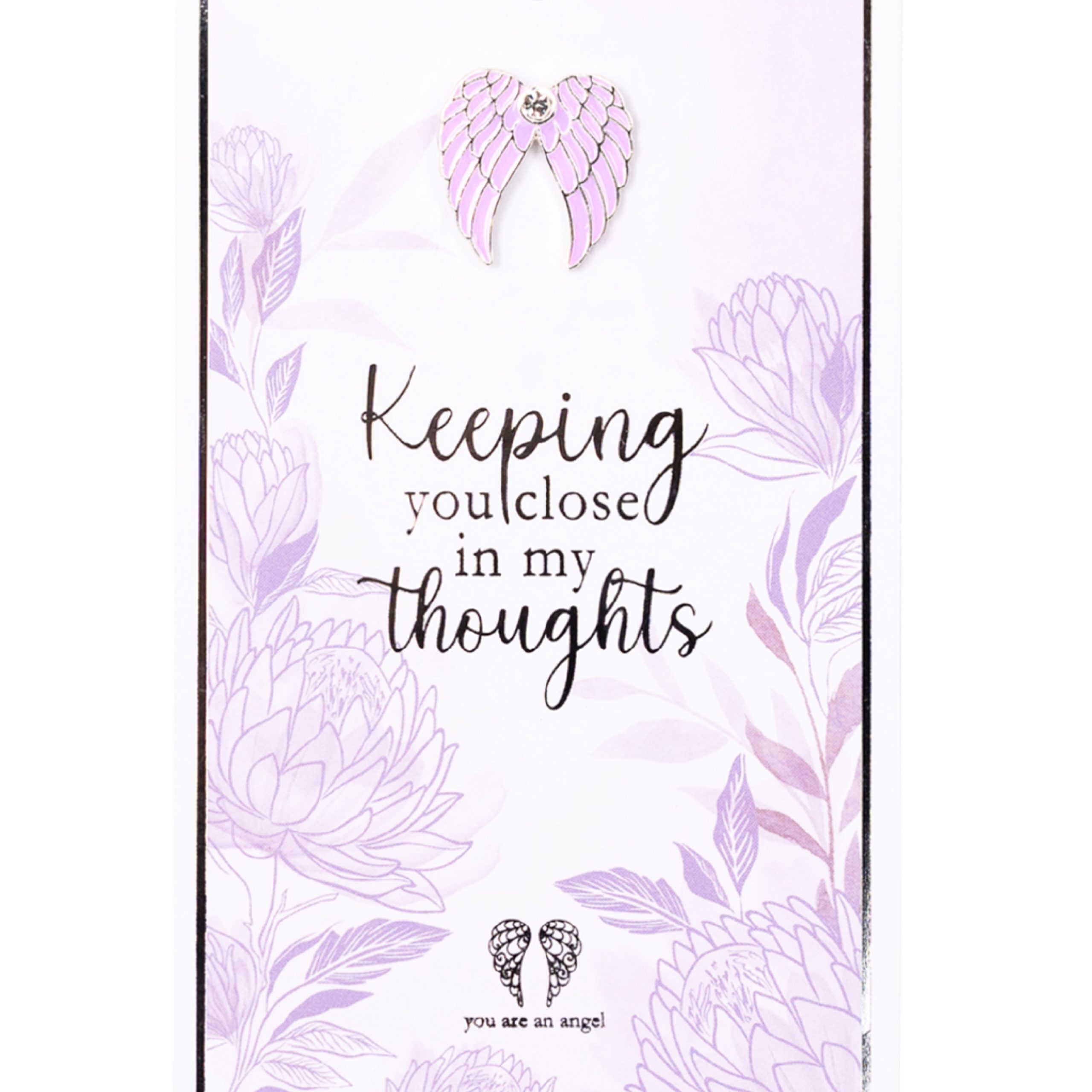 You Are An Angel pins are a thoughtful way to show how much you care. This pin is shaped in gold angel wings with a beautiful purple jewel embellishment with the sentiment, a sweet and thoughtful gift idea for loved ones.