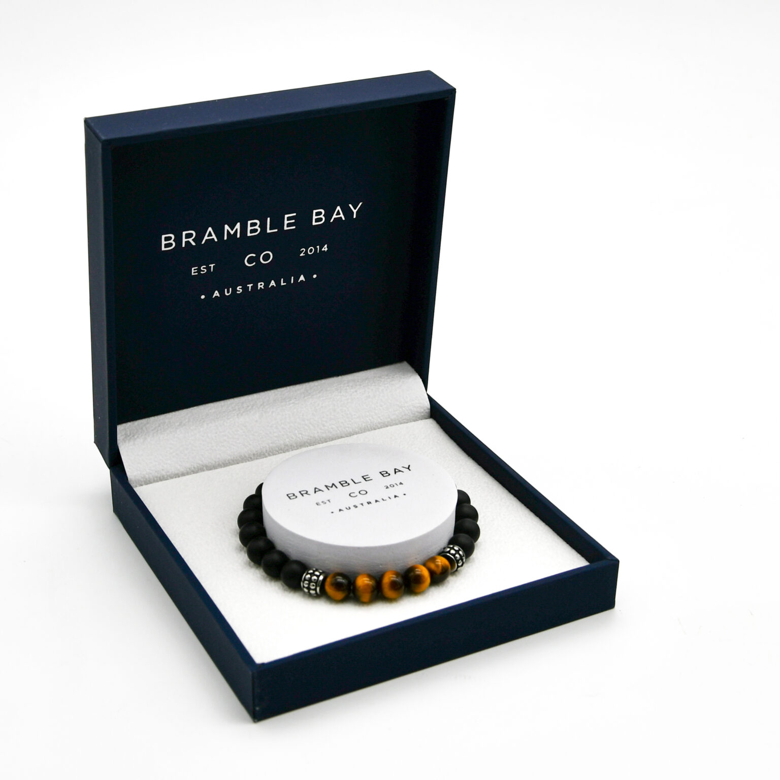 Large 5xGold Tiger Eye/Black Ag 10mm 2xS/S Beads Bracelet