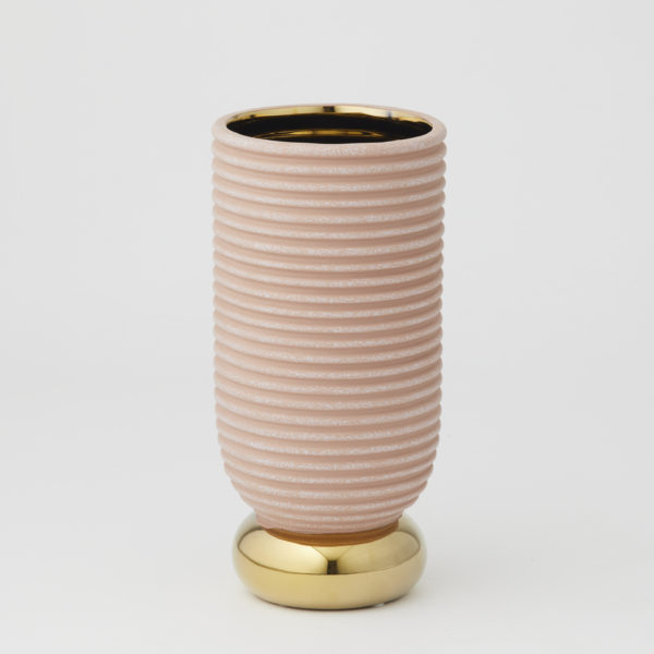 With its metallic gold finish and horizontal ribbed texture, the Lenora Vase brings interest to bland shelves and tables. It’s watertight and the perfect vessel to showcase a lovely floral arrangement or be utilised as a sculptural display.
