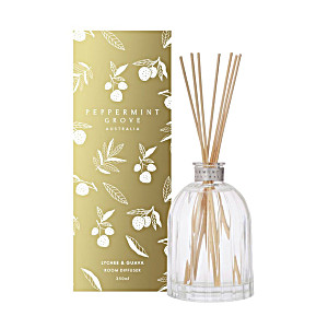 This deliciously sweet and fruity fragrance combines the sweetness of freshly picked lychees and berries with the tartness of guava, vanilla and lime zest. The ultimate fruity escape!Top notes are lychee, lime zest and mixed berries; middle notes are peach and guava sorbet; base notes are coconut and vanilla. Fragrance Family: Fruity Our fragrant room diffusers are handmade using high-quality Australian fragrances made at our in-house perfumery in the Southern Highlands of New South Wales. They are poured in our highly polished, custom-designed faceted glassware and will continuously release fragrance into your home or office. Flip the reeds as often or as little as you like, depending on how much of a fragrance hit you are after. Featuring a Limited Edition gold box with fine-line Christmas illustrations.