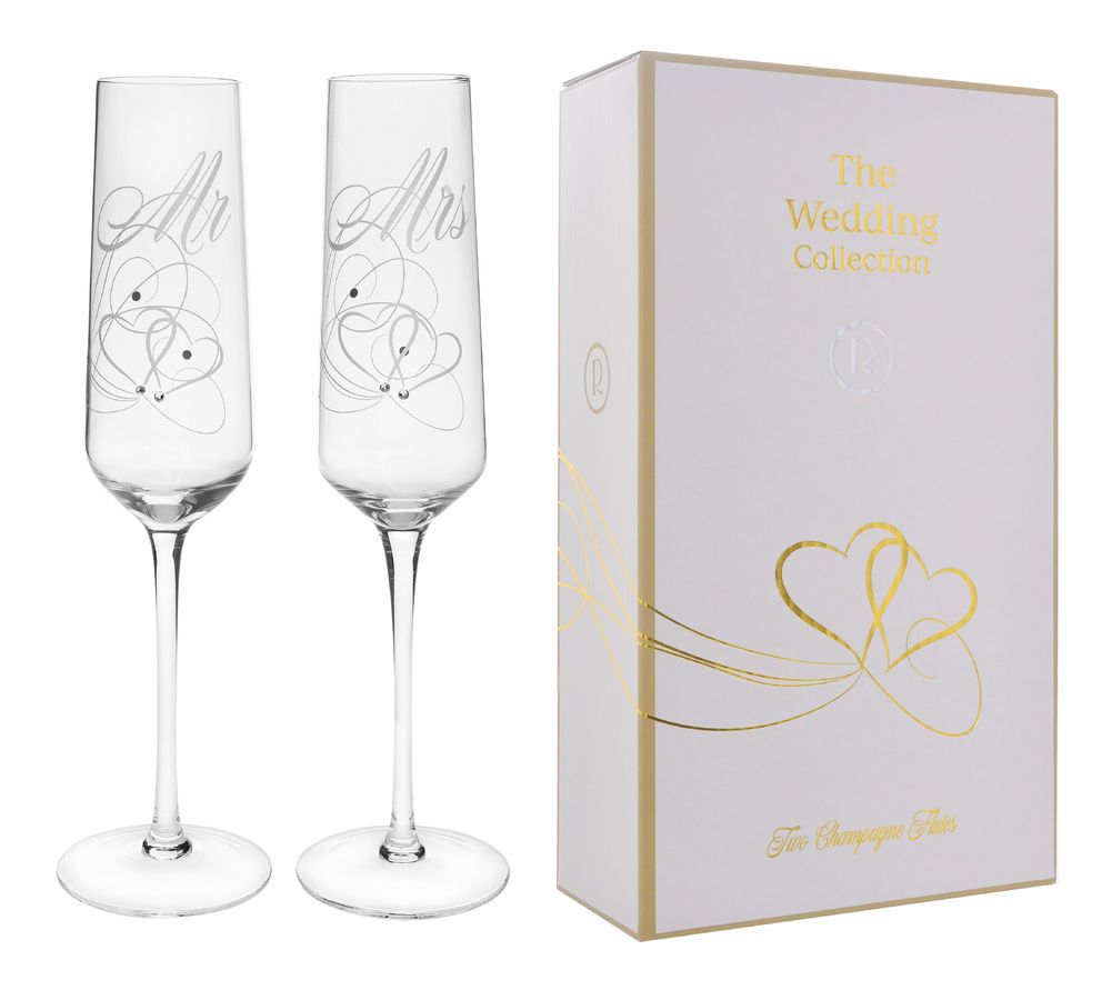 Mr & Mrs Champagne Flutes Set of 2, perfect for celebrating special moments together. Designed with elegance and durability, these flutes add a touch of sophistication to any occasion.