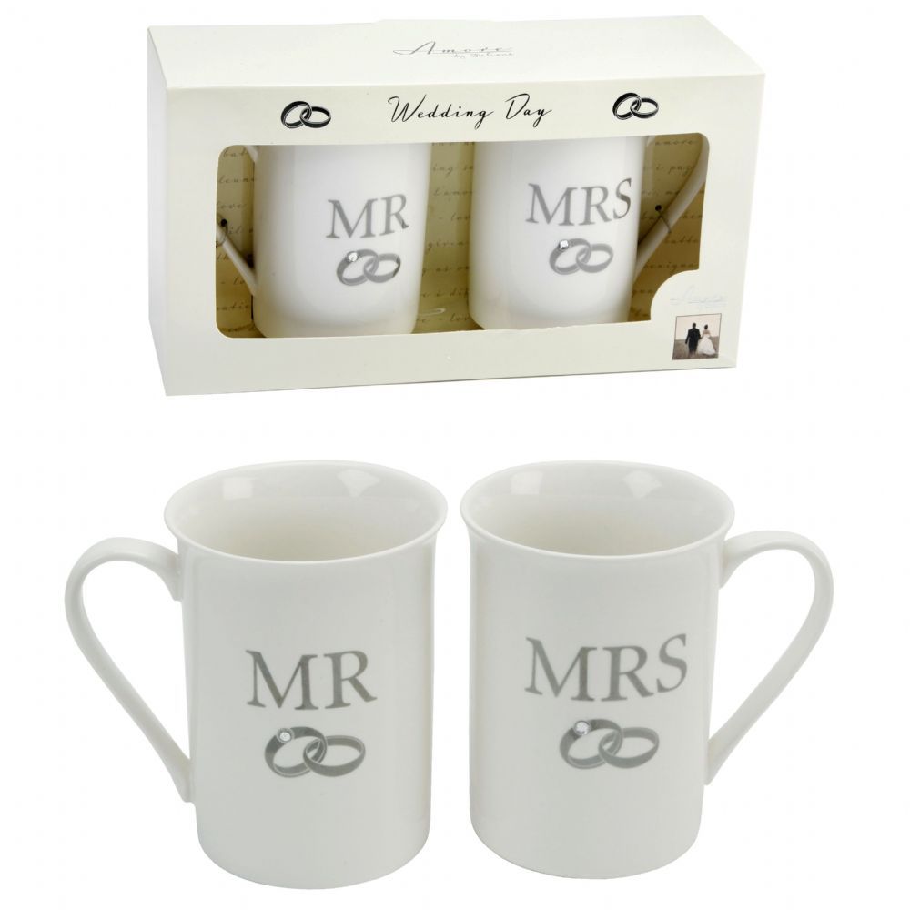 Mr & Mrs Mugs w/Diamond Ring set