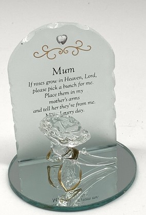 Mum memorial plaque is a touching tribute, delicately crafted and displayed in a 7cm x 9cm x 8cm acetate box. Honor your loved ones with this elegant symbol of remembrance.