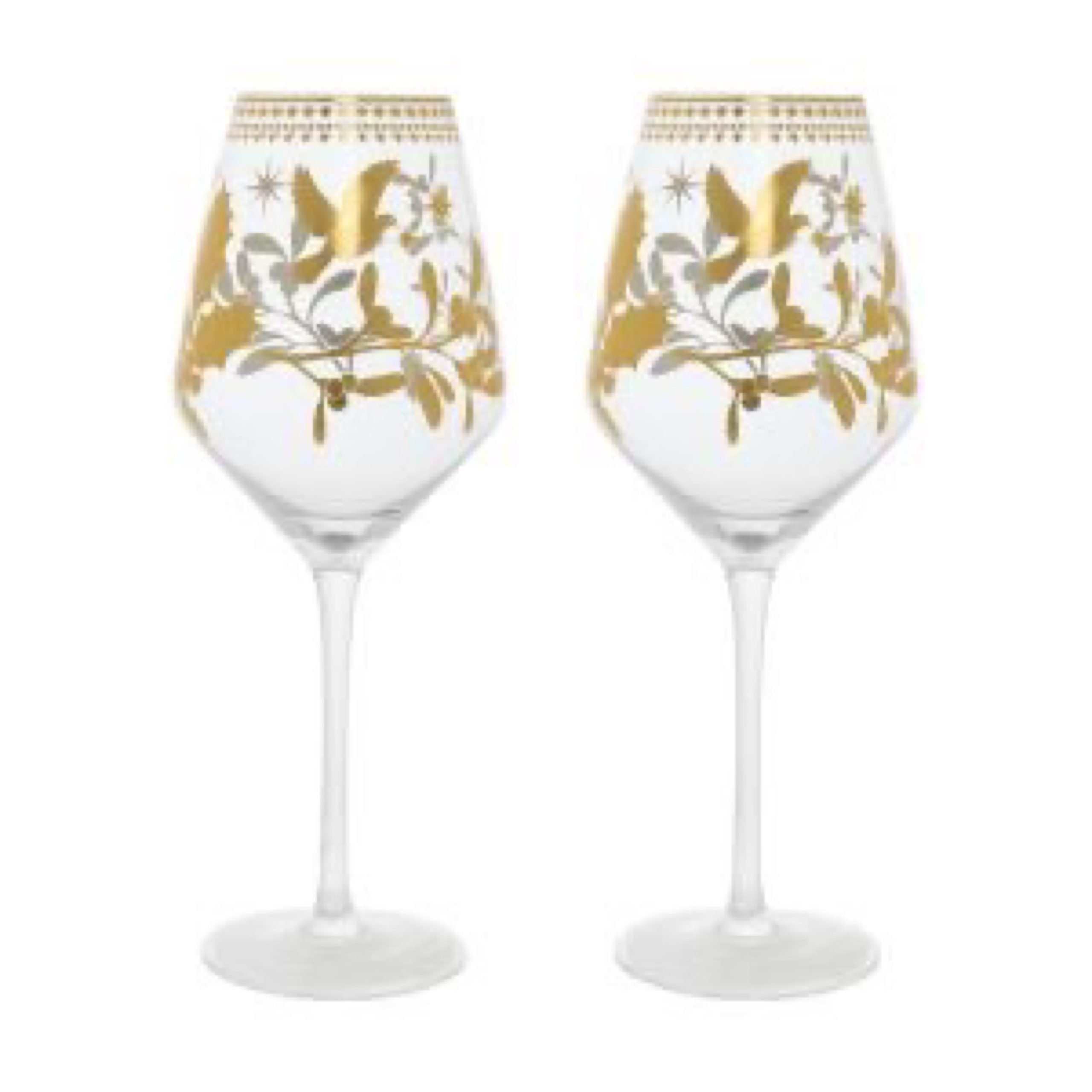 MW White Christmas Wine Glass 500ML Set of 2 Gold Gift Boxed