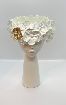 Resin Nero Cream Pot with Gold Filigree 28 x 18-8cm.