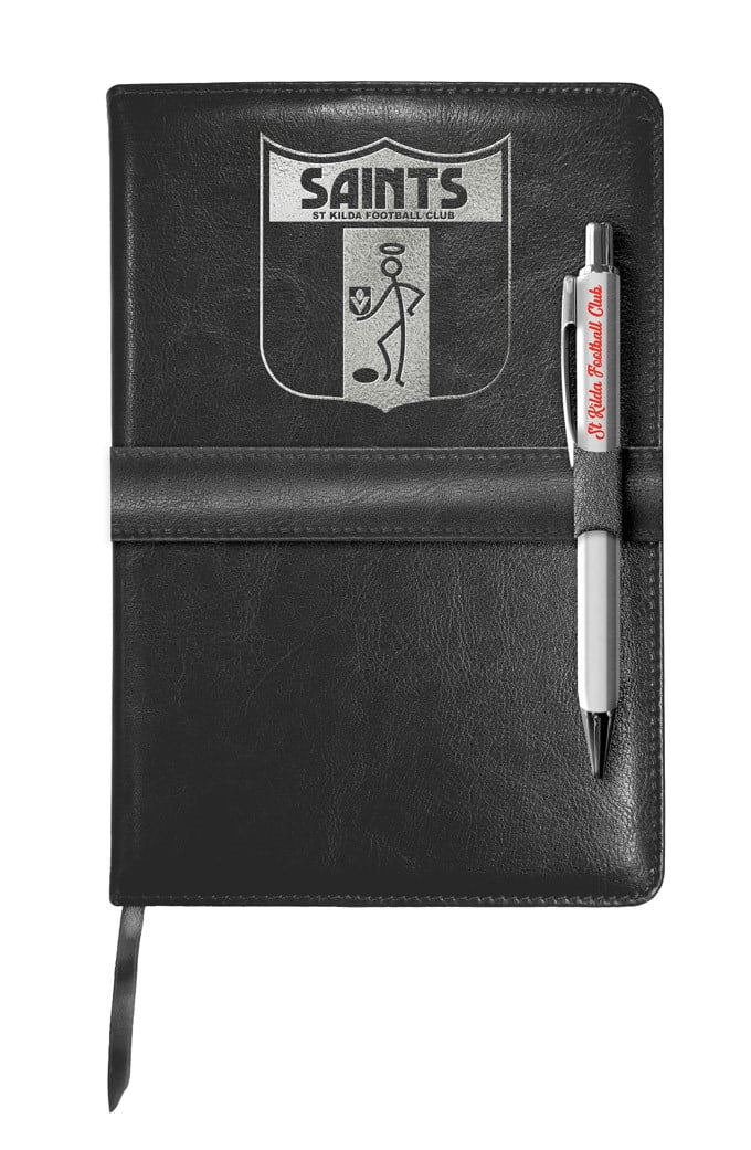 Official AFL Merchandise AFL Notebook and Pen Gift Pack Heritage logo PU leather notebook with pen strap & pen gift set Pen: blue ink Notebook A5 Soft Cover PU Leather 60 sheets line print -Official AFL Merchandise Inner 4 Outer 40r