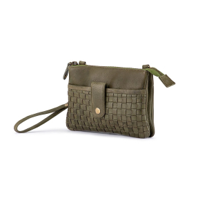 Soft leather woven front crossbody / phone bag. Front tab pocket for your mobile phone. Has a dual main compartment for separating your belongings and an inside zippered pocket. Adjustable / detachable shoulder and wrist straps allowing you to wear or hold it. Measuring 20cm W x 13.5cm H x 4cm D