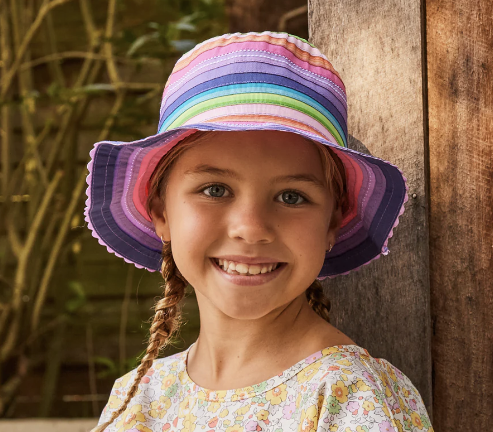 This stylish girls ribbon bucket hat is made from multi-layered ribbon in eye-catching color combinations. Its durability and packable design make it a great travel accessory, and the internal drawstring allows for a customized fit. Plus, its UPF50+ rating ensures protection from the sun’s rays.