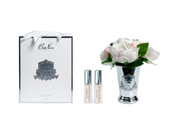 This Beautiful Peony Bouquet by Côte Noire has been styled in a silver vase with scent infused gel.