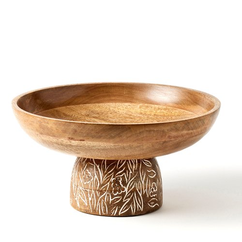 Pilbeam Living Flora Mango Wood Footed Bowl Natural/White 30cm
