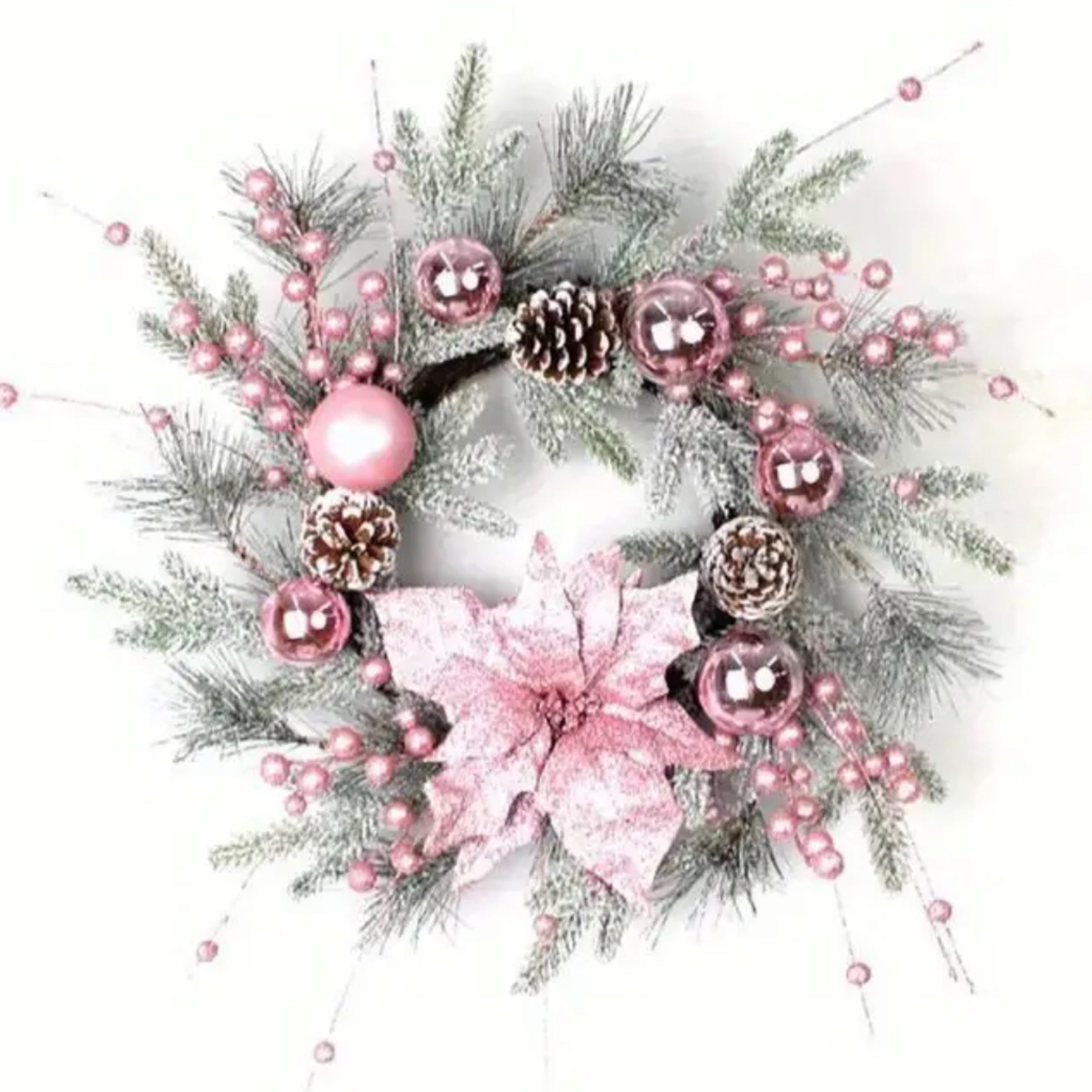 Elevate your Christmas decor with the Pink Berry Christmas Wreath featuring a festive flocked pine needle design. Crafted with durable materials, this wreath is a perfect addition to your Christmas decorations.