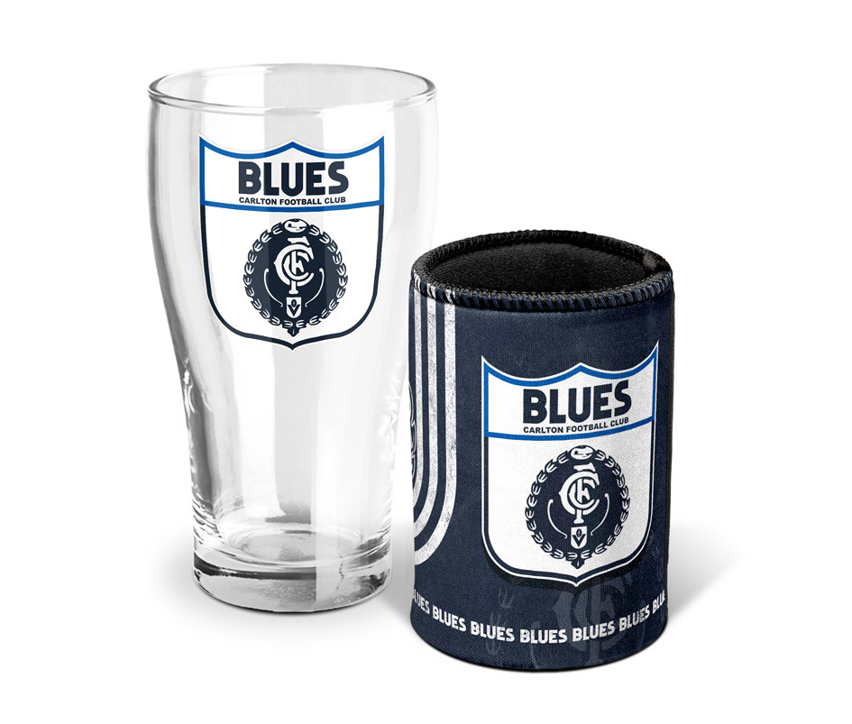 Enjoy a drink with every carlton victory with this great new Richmond Carlton Pint Glass and Can Cooler Gift Pack.