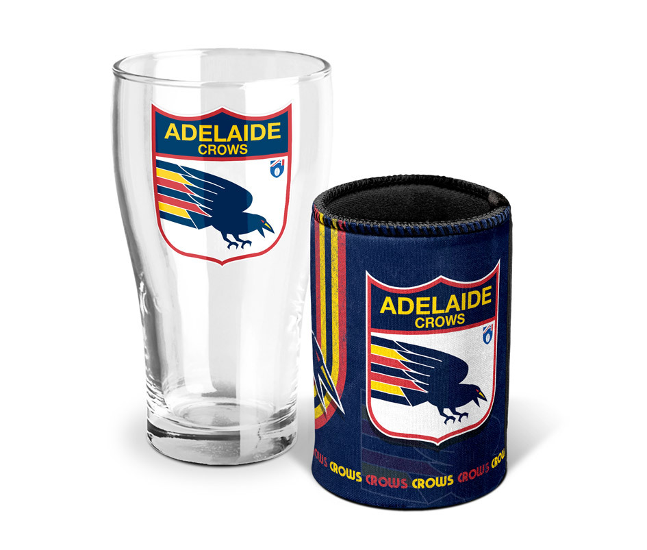Enjoy a drink with every Crows victory with this great new Adelaide Crows Pint Glass and Can Cooler Gift Pack.
