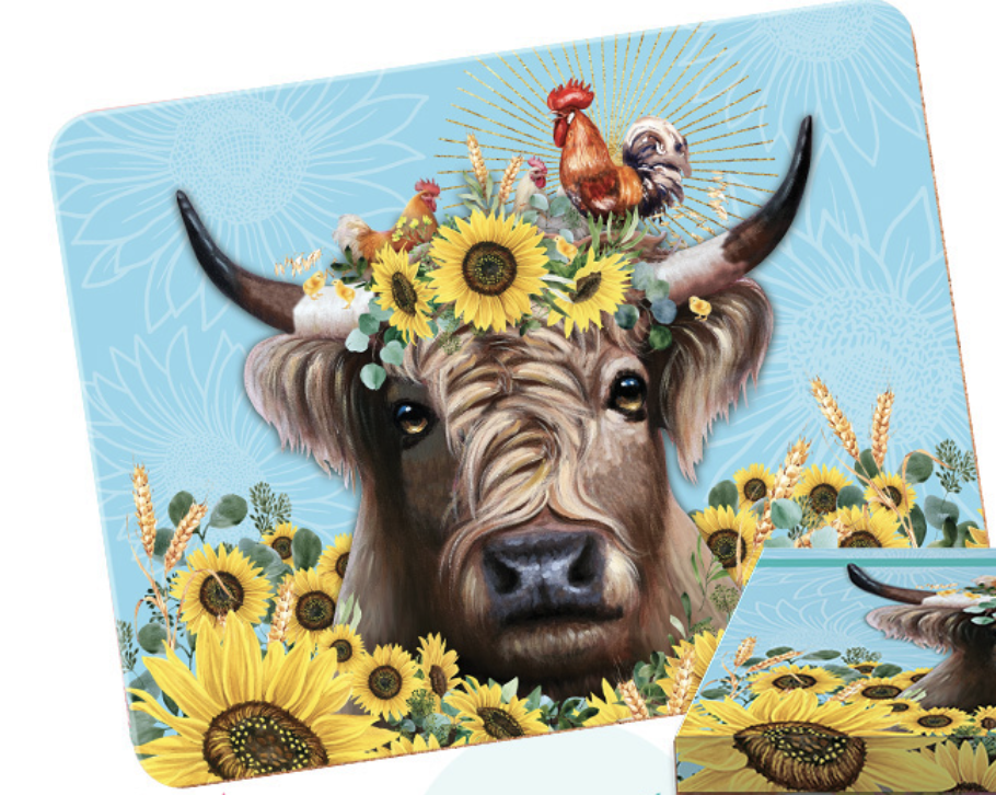 Set of 6 Placemats in gift box. Sunny Highland design. MDF & cork. 34×26.5cm ea.