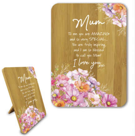 Bamboo Affirmation Plaque. 13x18cm. Wistful Wildflowers – MUM – FAMILY