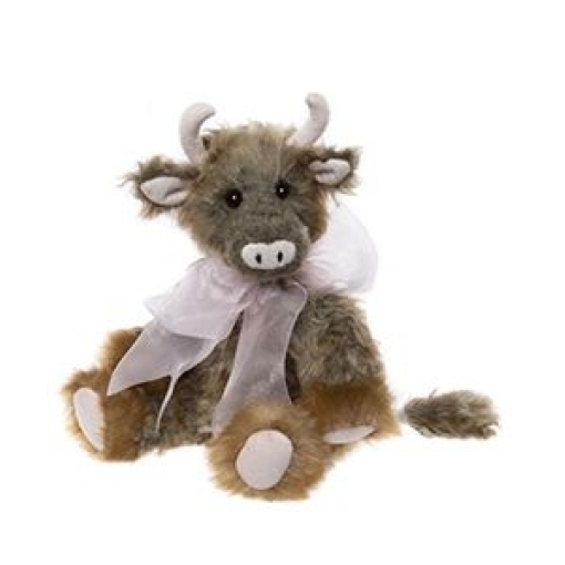 Prairie is an udderly adorable cow made from super-soft plush. Her textured coat showcases various shades of brown, contrasting beautifully with her majestic white horns, inner ears, nose and hooves. Completing her charming look is a pretty pink bow around her neck. For the most adorable duo, consider purchasing her friend Alpine as well. Suitable for ages 3 years +. Cow height: 30cm/12”/10 Bear Paws.