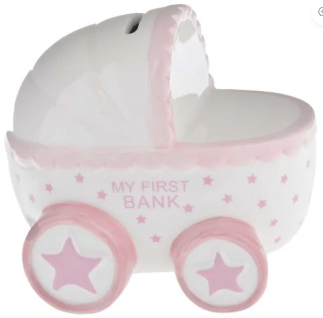 The Pram Money Box features an adorable ceramic design, measuring 15.5 x 10 x 10 cm. It offers a fun and educational way for children to learn about saving money while adding a charming touch to their space.
