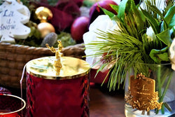 Xmas Deer Lid and Red Herringbone Candle With Tassel and Perfume Spray