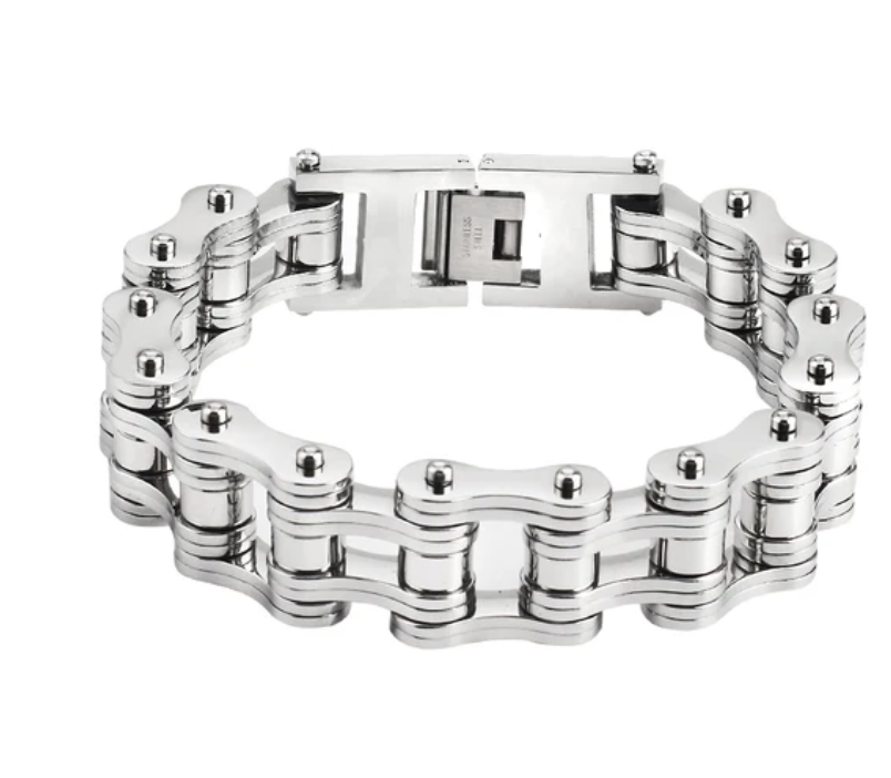 Rev up your style with our Punk Stainless Steel Bike Chain Bracelet! This edgy mens bangle is a bold statement piece that combines rugged charm with urban sophistication. Add this unique link chain bracelet to your collection for a touch of rebellious flair.