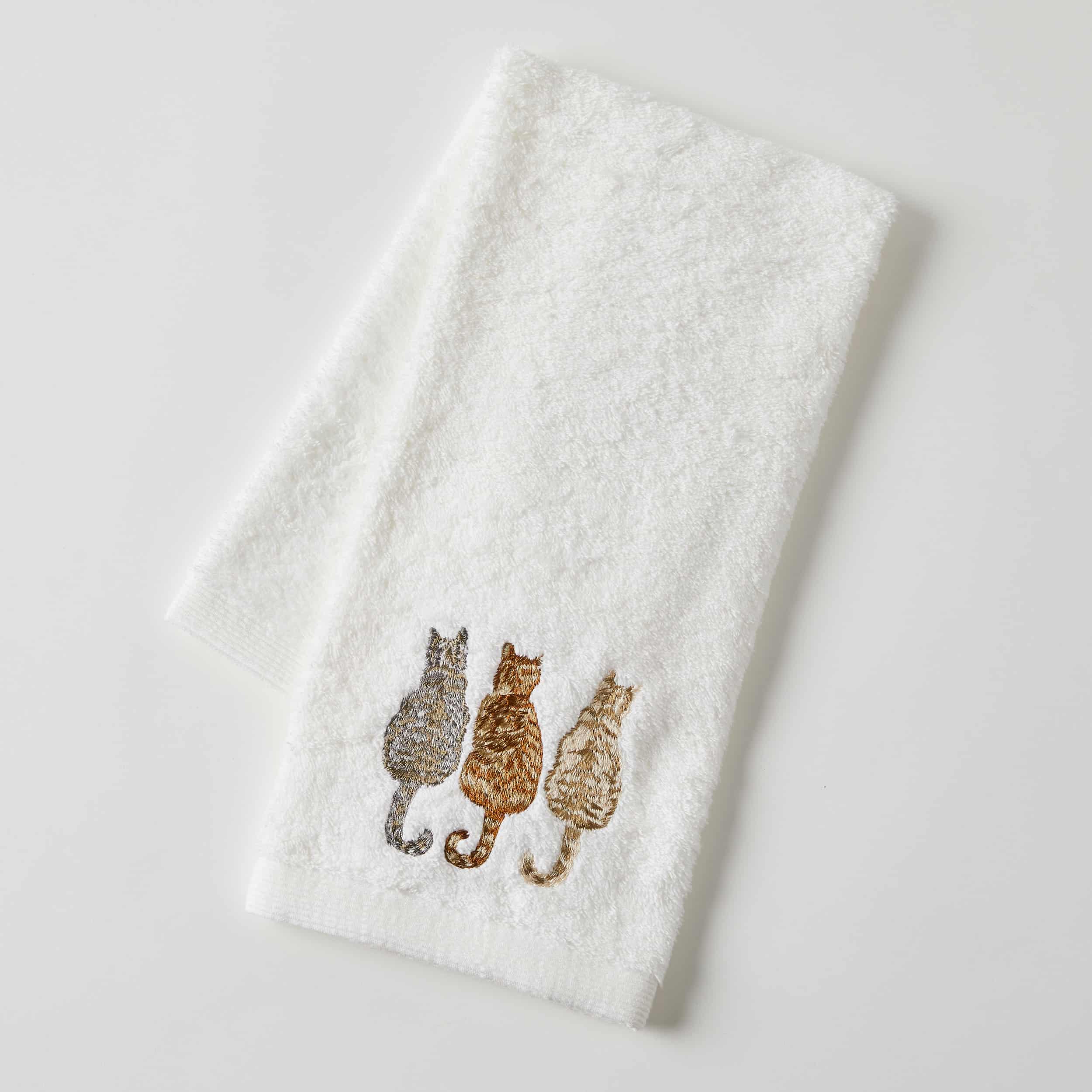 The soft Purrfect Hand Towel is made from 100% cotton, finished with a hand embroidered motif and designed to absorb water to leave skin feeling refreshed and dry.