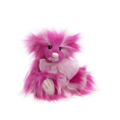 A little about me… Raspberry Cupcake showcases luxuriously soft, vibrant raspberry-pink long-pile plush fur with small tufts of white, creating a wonderfully fluffy appearance. Raspberry Cupcake has eyes that sparkle with personality, a dainty light pink hand-embroidered pink nose and wears an organza bow to match. This sweet bear also features tickly toe detailing upon her light pink flat paw pads. Look out for Raspberry Cupcake's bear sibling, Raspberry Ripple, they sit bear-utifully together! Suitable for ages 3 years+. Bear height: 23cm/9”/7.7 Bear Paws.