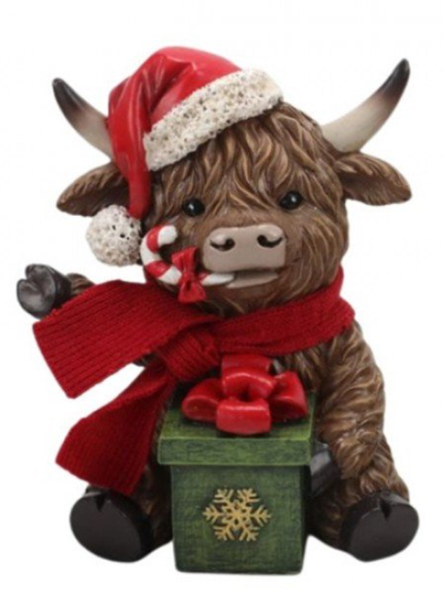 Add a touch of festive charm to your holiday decor with the Resin Xmas Highland Cow A, designed with an adorable finish and crafted from durable resin material. Measuring 10.5cm x 9cm x 12.5cm, this decorative piece is both sturdy and stylish for seasonal displays.