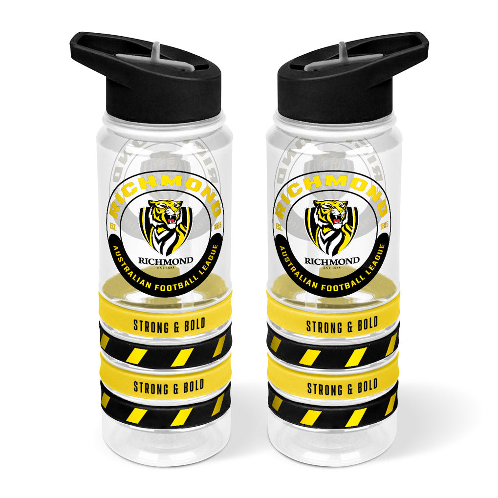 The AFL Team Quad Bands Tritan Drink Bottle is a fun and vibrant way to show your support for your team. Each bottle comes with four wristbands, allowing you to express your team spirit in style.