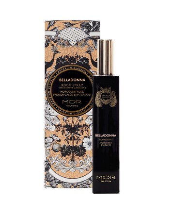 A signature Belladonna fragranced Room Spray presented in an elegant black glass bottle to add instant aroma and ambiance to any space.