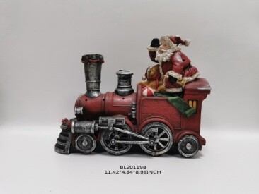 Santa on Train figurine featuring intricate detailing, perfect for holiday decorations. Ideal for enhancing festive displays both at home and in commercial settings.