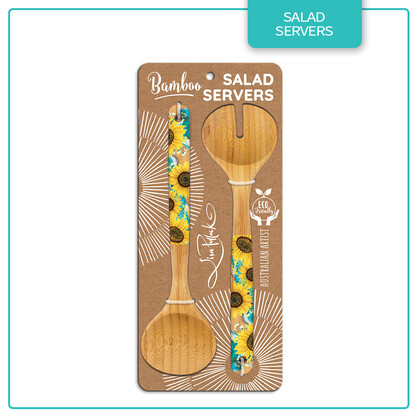 Set of 2 Bamboo Salad Servers on backing card. Bee Sunny.