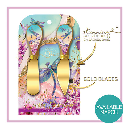 Expertly crafted for cheese lovers, our Design Gold Cheese Knives set offers a touch of elegance to any dining occasion. With bamboo handles and stunning gold blades, this set of 2 knives is perfect for cutting and serving all types of cheese. The printed backing card features gold foiling and tranquil butterfly details, making it a beautiful addition to your table setting.