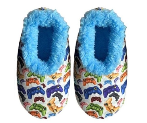 SLUMBIES SLIPPER SOCKS – Unique design on each kids slippers that are made with a brushed fleece exterior in a fun colourful paw print pattern and then lined with a soft Sherpa fleece inside. Makes excellent novelty slippers for gifts!