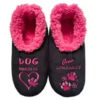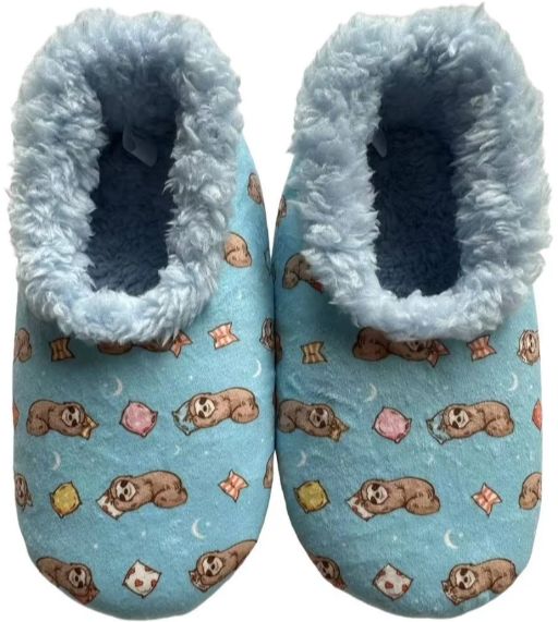 SLUMBIES SLIPPER SOCKS – Unique design on each kids slippers that are made with a brushed fleece exterior in a fun colourful paw print pattern and then lined with a soft Sherpa fleece inside. Makes excellent novelty slippers for gifts!