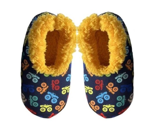 SLUMBIES SLIPPER SOCKS – Unique design on each kids slippers that are made with a brushed fleece exterior in a fun colourful paw print pattern and then lined with a soft Sherpa fleece inside. Makes excellent novelty slippers for gifts!