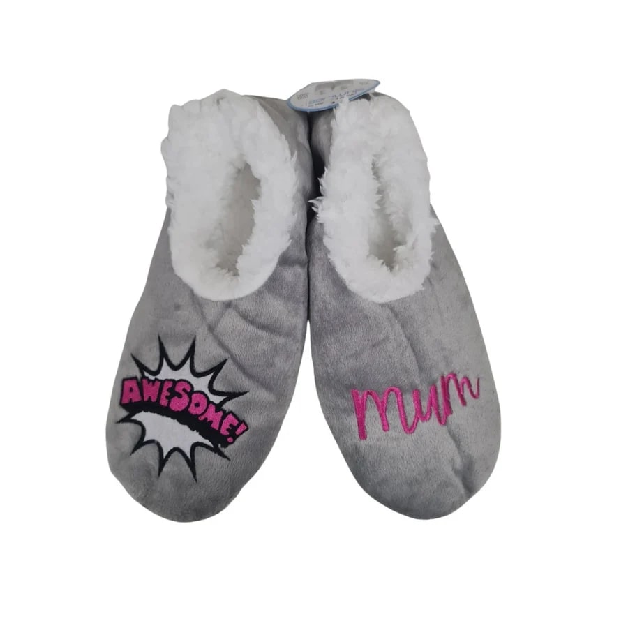 SLUMBIES SLIPPER SOCKS – slippers that are made with a brushed fleece exterior and then lined with a soft Sherpa fleece inside. Makes excellent novelty slippers for gifts!