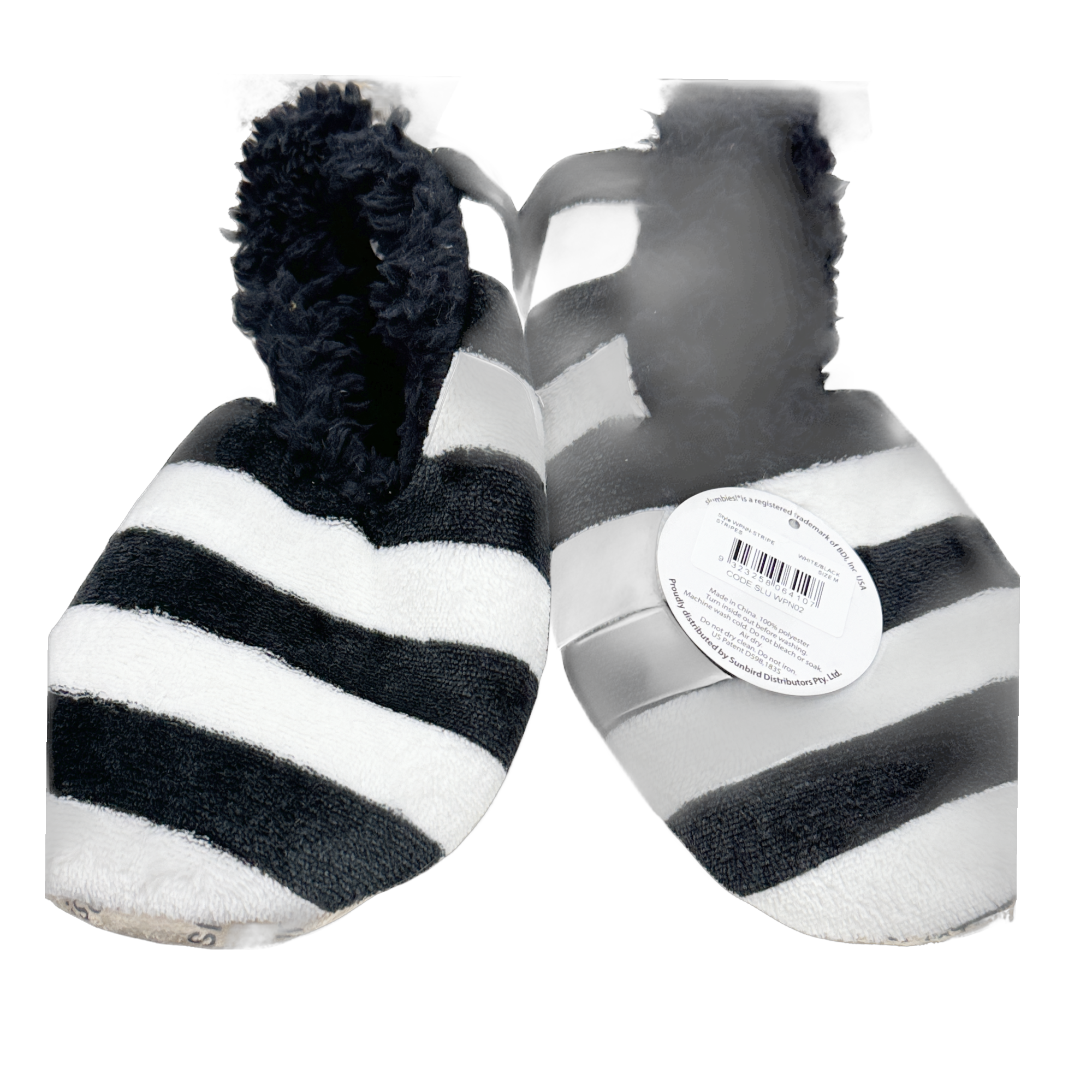 SLUMBIES SLIPPER SOCKS – slippers that are made with a brushed fleece exterior and then lined with a soft Sherpa fleece inside. Makes excellent novelty slippers for gifts!