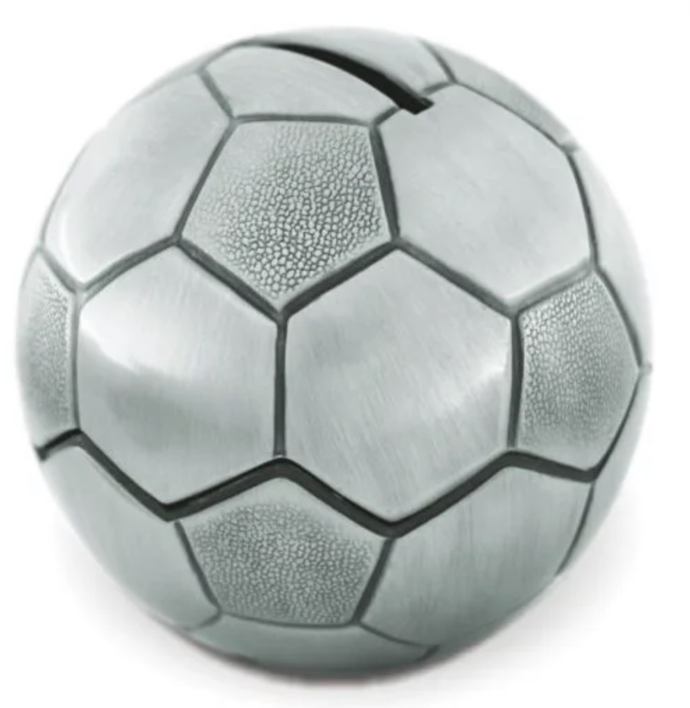 This Soccer Ball Pewter Money Bank measures 10.5 x 8.5 x 10.5 cm, offering a compact and stylish way to store your savings. Crafted with a soccer-themed design, it makes a functional and decorative addition to any space.
