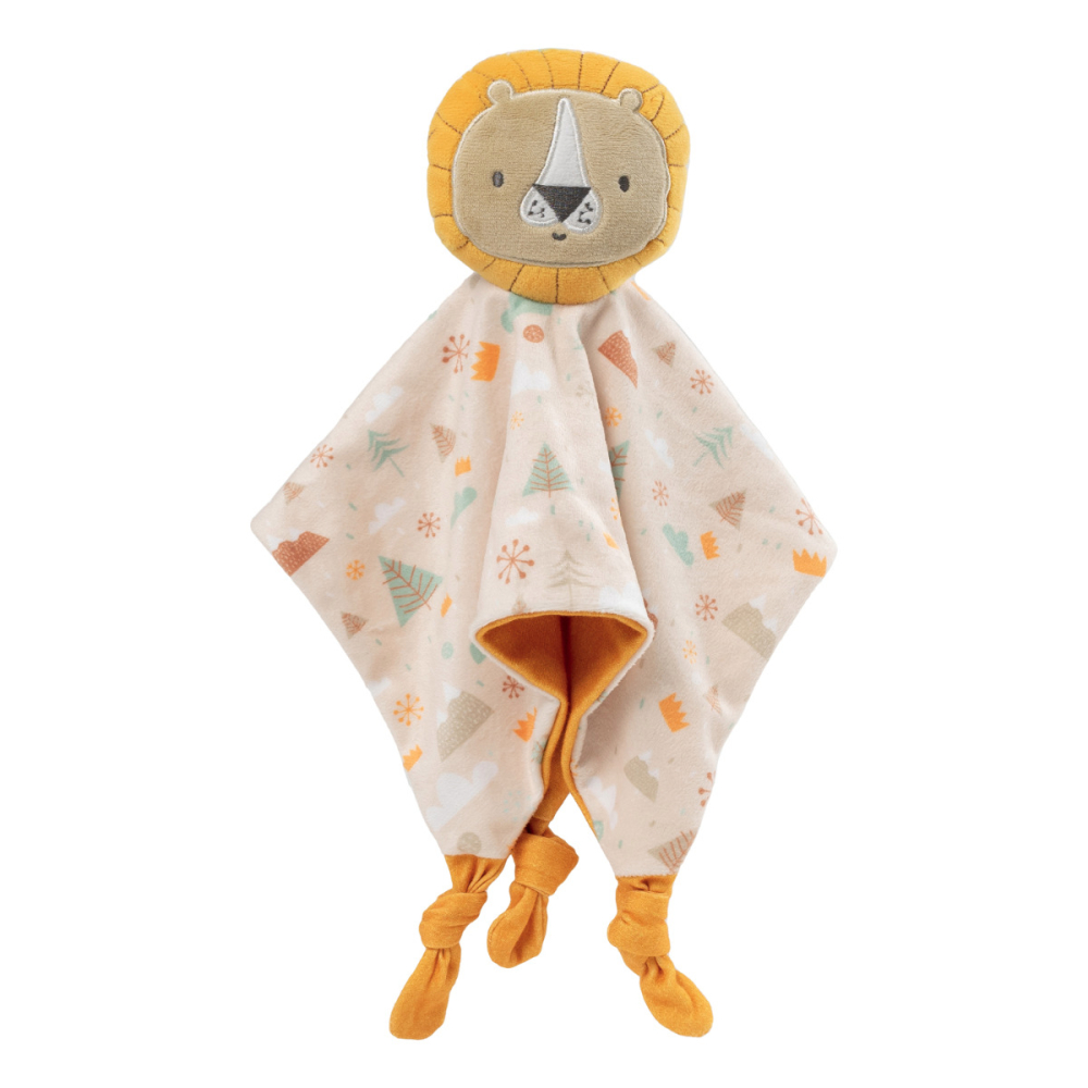 Details: Plush baby comforter. Soft blanket with knotted corners. Made from a durable cotton/polyester blend.Machine washable.