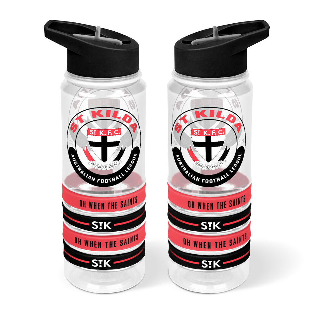 The AFL Team Quad Bands Tritan Drink Bottle is a fun and vibrant way to show your support for your team. Each bottle comes with four wristbands, allowing you to express your team spirit in style.