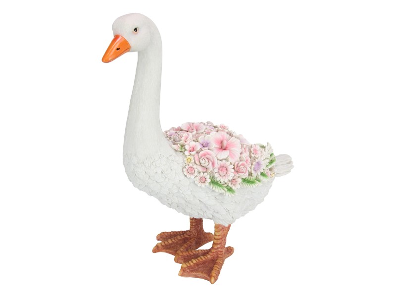 Poly Resin 44cm Standing Goose with Floral Finish