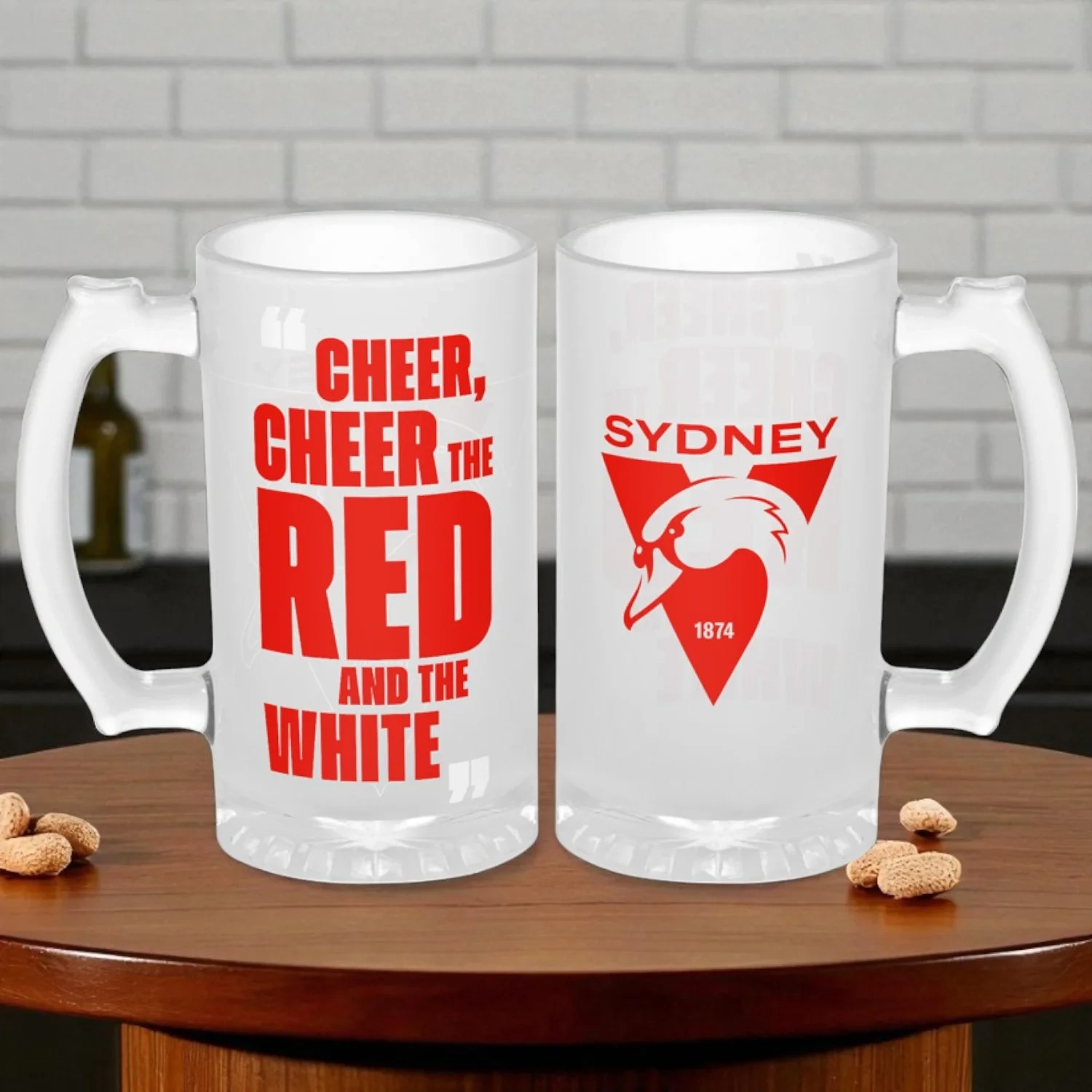 Raise your glass in true footy spirit with the Sydney Swans Frosted Stein Glass, a must-have for loyal supporters. Crafted from durable frosted glass and boasting a 500ml capacity, this stein features the official Sydney Swans logo on one side and a rousing line from the club song on the other. Each glass is officially licensed AFL merchandise and comes in a premium gift box for presentation and protected delivery.