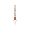 Product Details: Fabric printed lanyard with choke safety clip and rose gold accessories.